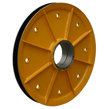 滑輪幅板采用幅板壓制成型,滑輪兩支點受力,與輪轂成三角形,加強滑輪的穩(wěn)定性,此結(jié)構(gòu)新穎,為我司獨有滑輪生產(chǎn)工藝,相同受力情況下,可減少滑輪重量,R槽為車刀成型,因此與輪轂軸的同軸度更高,R槽跳動小,性價比極高。